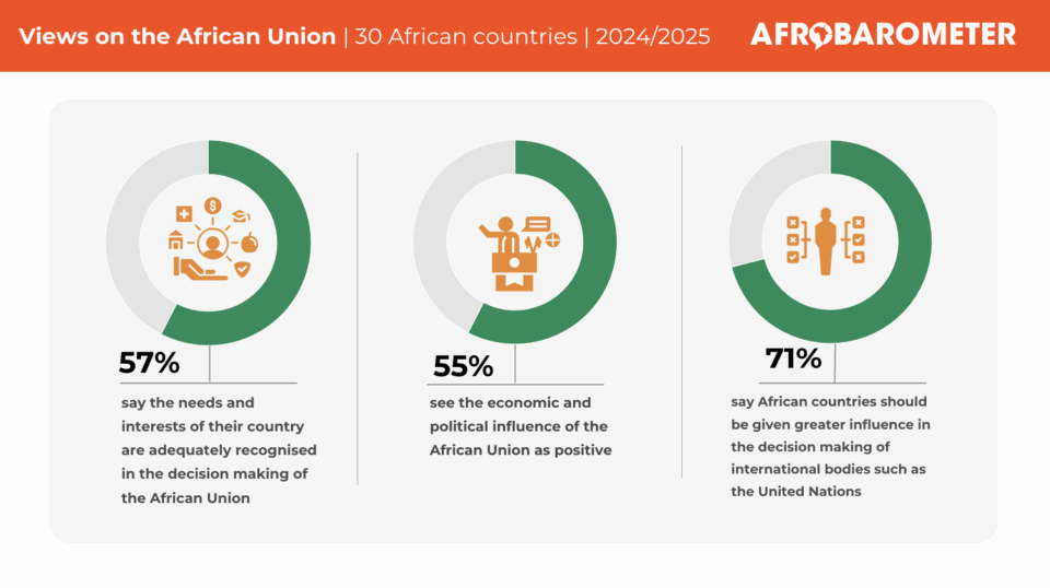 Seven in 10 Africans support the idea that African countries should be given greater influence in the decision making of international bodies such as the United Nations, the latest Afrobarometer survey findings reveal.