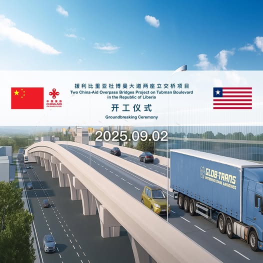 President Joseph Nyuman Boakai today, Tuesday, September 2, 2025 broke ground for the two overpass bridges in front of the Ellen Johnson Sireleaf Ministerial Complex, a facility also constructed by Chinese engineers with some US$60 million Chinese money.