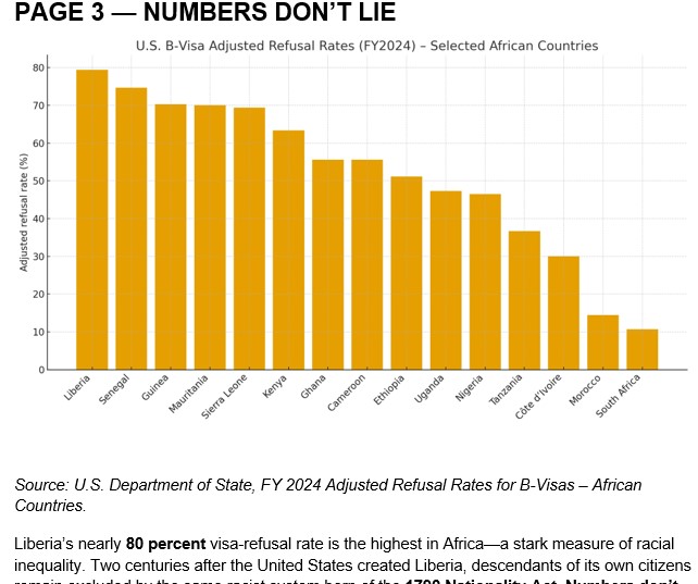 The recent U.S. announcement extending visa validity for Liberians is, at best, a polite insult—a deceptive gesture concealing over two centuries of racial injustice. It lures Liberians to pay high visa fees only to face near-certain denial, while the U.S. Embassy in Monrovia collects millions annually from those it has already excluded.